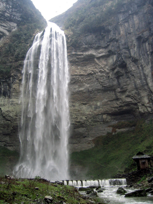 九龍溪源頭的流紗瀑布高216米,是全國最高的瀑布,有人說它還是全世界最高的瀑布,在2011年入選“2011游客最喜愛的中國十大瀑布旅游勝地”。豐水期,滾滾流水從懸崖上飛落入深潭,猶如九龍翻波,吞云吐霧,聲若巨雷,震撼山谷,氣勢磅礴,雄奇壯觀!每當(dāng)枯水時(shí)節(jié),流水飄下懸崖,時(shí)而如輕紗拂面,時(shí)而似珠簾懸掛宛如白紗蕩滌綠潭漾起層層漣漪婀娜多姿溫柔秀雅。從正面仰望瀑布,好像瀑布是從云端飛流直下,可謂“飛流直下三千尺,疑是銀河落九天。”沿潭畔走至瀑布里去,象是猴王鉆進(jìn)了水簾洞。從瀑布背后觀瀑布,只看見瀑布是從一個半園形的“月亮巖”上飛瀉下來的。瀑布在飄、舞、進(jìn)、退,如浪、如波、如紗、如練。由于峽谷變幻莫測。當(dāng)陽光照射時(shí),瀑布上簾便生出七彩長虹。彩虹隨著水珠往下飄落:只見一彩虹落下,一個又冒出來;一個緊接著一個地消失,一個緊接著一個地產(chǎn)生,那一道道閃現(xiàn)奇光的彩虹真是太美麗了!
