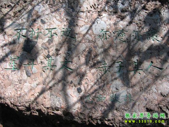 從古城的東門城樓外的虹橋前沿江下行3華里路程,到得聽濤山,從山道向右拾階而上,不遠(yuǎn)處便能看見一塊石碑,上寫“沈從文墓地”5個(gè)遒勁大字。再不遠(yuǎn)處置有一塊豎長的石碑,上面刻有畫家黃永玉為表叔沈從文題寫的碑文:“一個(gè)士兵不是戰(zhàn)死沙場,便是回到故鄉(xiāng)。”墓地建在一塊狹長的小草坪上,沒有墳冢,只樹有一塊6噸多重的天然五彩石,成為沈從文墓獨(dú)特的標(biāo)志。石正面鐫刻的是沈從文富有哲學(xué)內(nèi)涵的手跡:“照我思索,能理解我;照我思索,可認(rèn)識人。”石背面是沈從文的姨妹、美國耶魯大學(xué)教授張充和撰書,沈從文侄女婿、中央美術(shù)學(xué)院著名雕塑家劉煥素教授鐫刻的挽聯(lián):“不折不從,星斗其文;亦慈亦讓,赤子其人。”其聯(lián)句尾四字:“從文讓人”透射出先生一生的高風(fēng)亮德。沈從文墓地清幽靜謐,四周綠樹環(huán)抱,墓地上和四周的草坪上擺放著無數(shù)的野花和竹編的一些蝴蝶,這些都是前來膜拜的旅人們留下的。