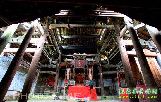 土司祖師殿位于老司城太平南麓,始建于后晉天福二年(公元937年),重建于明代。正殿柱大數(shù)圍,上架木枋處無(wú)斧鑿痕跡,相傳為魯班顯靈所建。此殿占地580多平方米正殿面闊五間,進(jìn)深四間重檐歇山頂,長(zhǎng)17.5米,寬13米,高20米,全木材結(jié)構(gòu),永34根大柱支撐屋頂。柱礎(chǔ)用雙曡圓鼓式,殿脊殿檐是圖案精致的陶磚陶瓦。殿中金柱前,砌有神龕一座,上供“祖師”神象。殿宇斗拱雄偉古樸,梁架結(jié)構(gòu)頗為特殊,是土家族地區(qū)頗具民族特色的建筑,為湖南省重點(diǎn)文物保護(hù)單位。