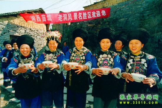 三、訪苗寨:穿越神工鬼斧的天然石洞,進入老洞苗寨。鑼鼓喧天,笙歌陣陣,熱情的村民唱起了祝酒歌。品迎客酒,吃農(nóng)家飯,參觀列入歷史文化名村的古老獨特的石頭風格建筑,觀看苗寨為您安排的互動節(jié)目。下午四點乘老洞專車返回鳳凰古城,開始新的愉快旅程。