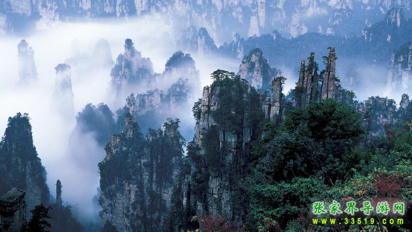 袁家界面積約1200公頃,平均海拔1074米,它東鄰金鞭溪、遠眺鷂子寨;南望黃石寨,連接天波府;西通天子山;北距索溪峪。