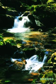 為沙刀溝第一景。一塊崩塌的巨石橫臥溪中。石的一端擱于右岸,供成一孔。溪水穿孔而過(guò),發(fā)出叮叮咚咚的響聲,在溪內(nèi)沖成一個(gè)1米多深的潭。潭水清澈如鏡,潭底紅白砂石光潔晶瑩,魚(yú)、蛙時(shí)而嬉游其中。潭兩邊石峰高聳環(huán)峙,闊葉林、灌木叢茂密常青,峰麓遍生苔蘚,如鋪綠毯。山峰、碧空倒映潭底,水中掠過(guò)縷縷白云。潭右上方有一高約50米、直徑約5米的石柱立于路旁,綠葉扶疏,秀麗挺拔,與清心潭陪襯成奇特佳境。立潭觀景,塵念俱消。