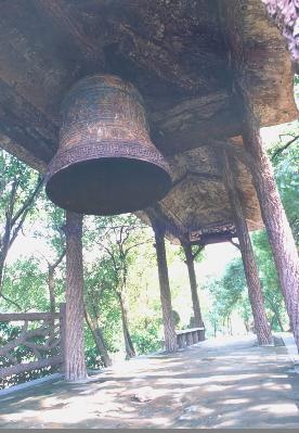 飛來鐘原為君山崇勝寺的古鐘,南宋淳佑五年(公元 1245 年),荊湖安撫制置使孟珙重修崇勝寺時復(fù)制一鐘,鐘高一丈多,大數(shù)圍,重4000余斤,上有“淳佑五年造”,鐘身上鑄有“皇帝萬歲,國泰民安,風(fēng)調(diào)雨順,五谷豐登”16 個大字,四方凸出的部分用青銅澆鑄的四條金龍,栩栩如生,形態(tài)逼真。原鐘在1966 年被砸毀,現(xiàn)在的飛來鐘是1979 年由市閥門廠復(fù)制而成,高約2 米,直徑1.2 米,重約 2 噸。鐘身上改鑄著鐘相、楊幺起義的戰(zhàn)斗口號“均貧富,等貴賤”六字,比前者更富有深刻的含義。這口古鐘有段優(yōu)美的傳說。相傳南宋初年,洞庭湖畔數(shù)以十萬計(jì)的農(nóng)民在楊幺率領(lǐng)下,掀起了轟轟烈烈的農(nóng)民起義。相傳一天夜晚,朝廷派兵前來偷襲駐扎在君山的楊幺寨,忽然從天上飛來一口巨鐘,鐘聲陣陣,催醒義軍,奮起抗敵,因此叫飛來鐘。這是人們深切懷念楊幺起義軍,用各種方式來表達(dá)贊美之情。古鐘的傳說便寄托了人們的這種心情。有人據(jù)此認(rèn)為,原來的飛來鐘系楊幺起義軍所鑄的報警器。