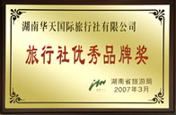 我們是您的最佳選擇! 值得信賴。 另: 1、2009年經省旅游局和省世博辦推薦,華天國旅成為上海世博會團隊票合作銷售“湖南省唯一指定旅行社”。 2、最新評定:華天國旅為 湖南五大地接社之一 (2010年4月22日) 3、最新評定:華天國旅為:湖南五星級旅行社 (2010年5月10日)