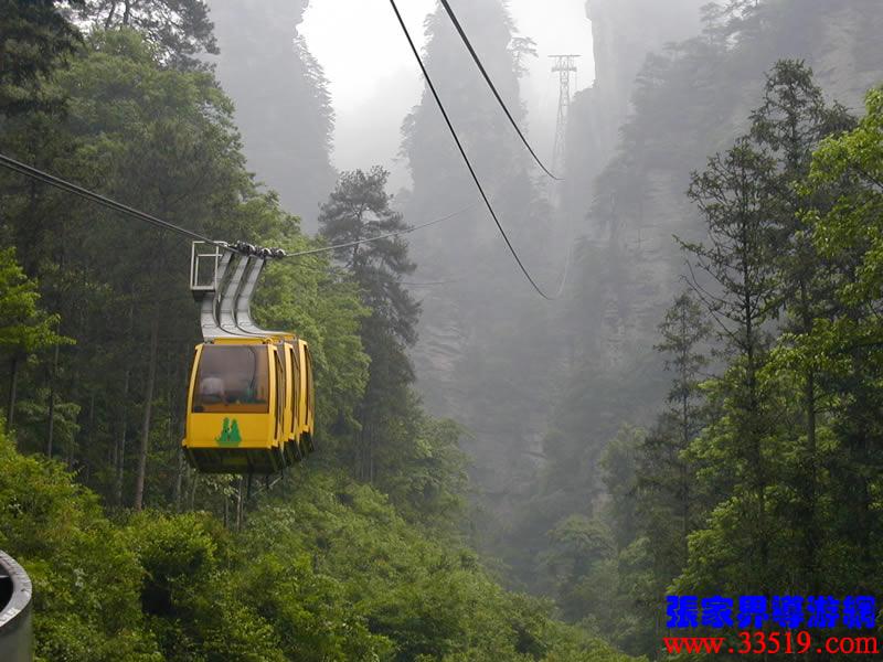 (索道站)現(xiàn)在,我們就要乘索道下山了。黃石寨(黃獅寨)索道是1995年5月至1997年9月臺灣證吉興業(yè)有限公司與張家界公園管理處合資興建的我市第一條觀光索道。索道線路水平距863,高差431米,運(yùn)行速度每秒8米,單向小時(shí)運(yùn)量948人,設(shè)備全部從法國波馬公司引進(jìn),總投資4000多萬人民幣。黃石寨(黃獅寨)索道的建成,為公園開辟了一條空中游覽線,填補(bǔ)了張家界無觀光索道的空白。古詩說:會當(dāng)凌絕頂,一覽眾山小。乘索道觀張家界公園,別是一番感受。