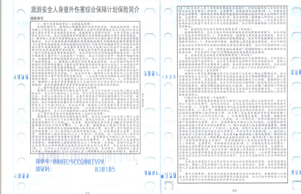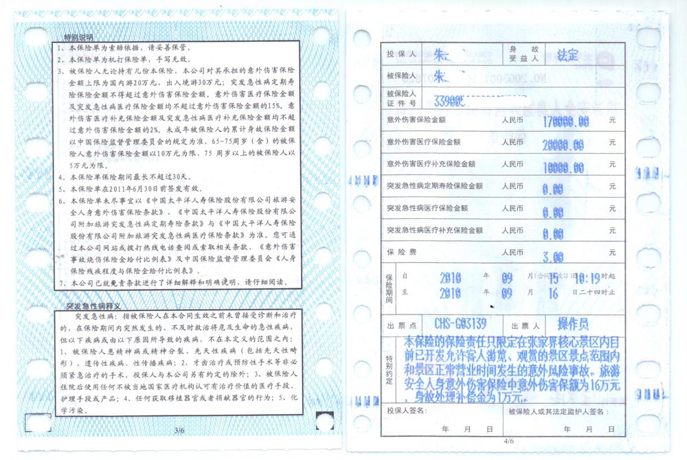 以下就是最重要的一個張家界核心景區(qū)所列的保險明細: