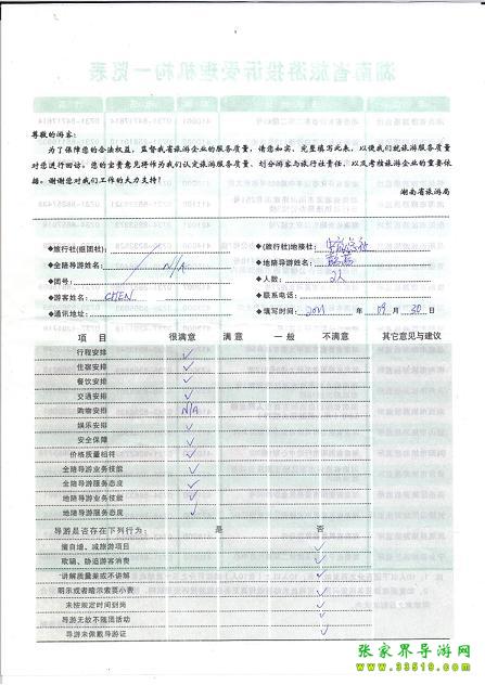 2011年9月30日陳小姐一行2人旅游質(zhì)量反饋