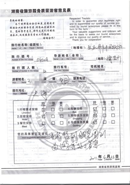 2011年4月23日王先生一行12人旅游質(zhì)量反饋:為游客處處著想